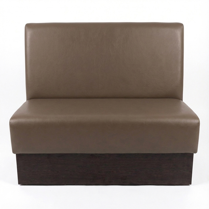 Strakke wandbank met box, gestoffeerd met het uiterst stevige Amalfi kunstleder.